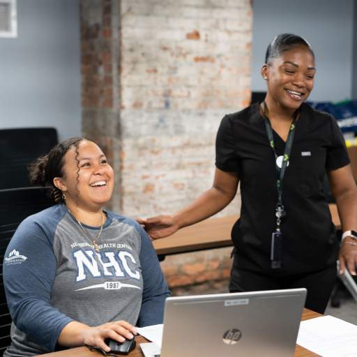Prior to the program, Sol and Jazzmin were patient service representatives (PSR) for Neighborhood. PSRs are the first and last points of contact for visitors. They have the crucial role of checking patients in and out, assisting with scheduling and rescheduling appointments, inputting insurance information, and managing any forms that need to be filled out. PSRs often grow into other roles at Neighborhood.
