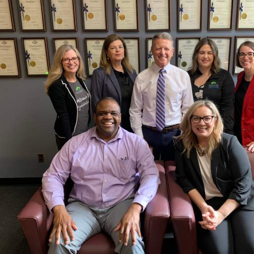 Pictured are Neighborhood's President and CEO Joanne Haefner, Jill Latacki (VP of Human Resources), Sandy Walker (Director of Equity), Ginger Geoffery (Director of Communications), Melissa Mosko (Director of Training and Development), and Sara Pisa (Project Manager) with Assemblymember Rivera, Senator Gallivan, and McKayla Mulhern from Sen. Kennedy's office